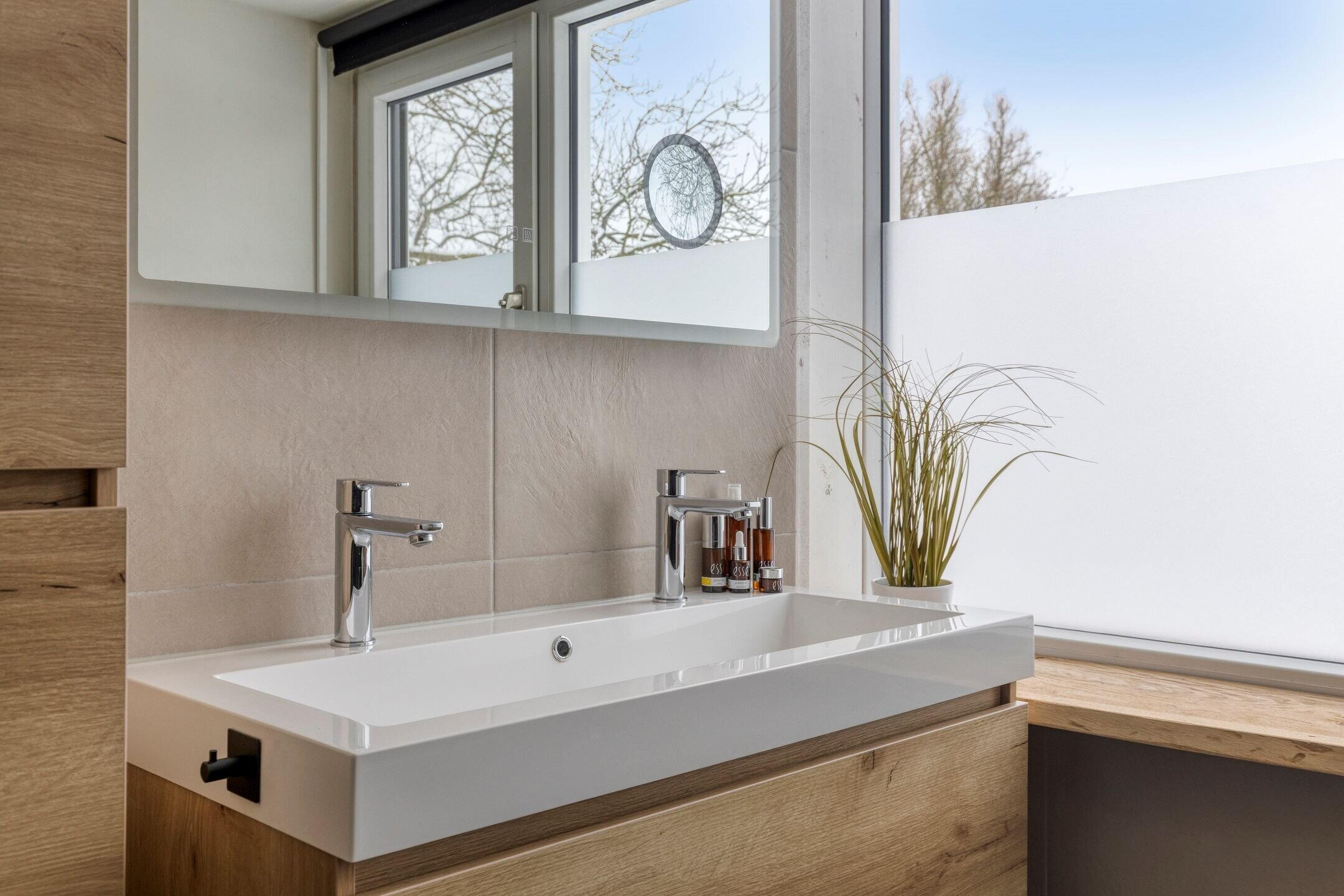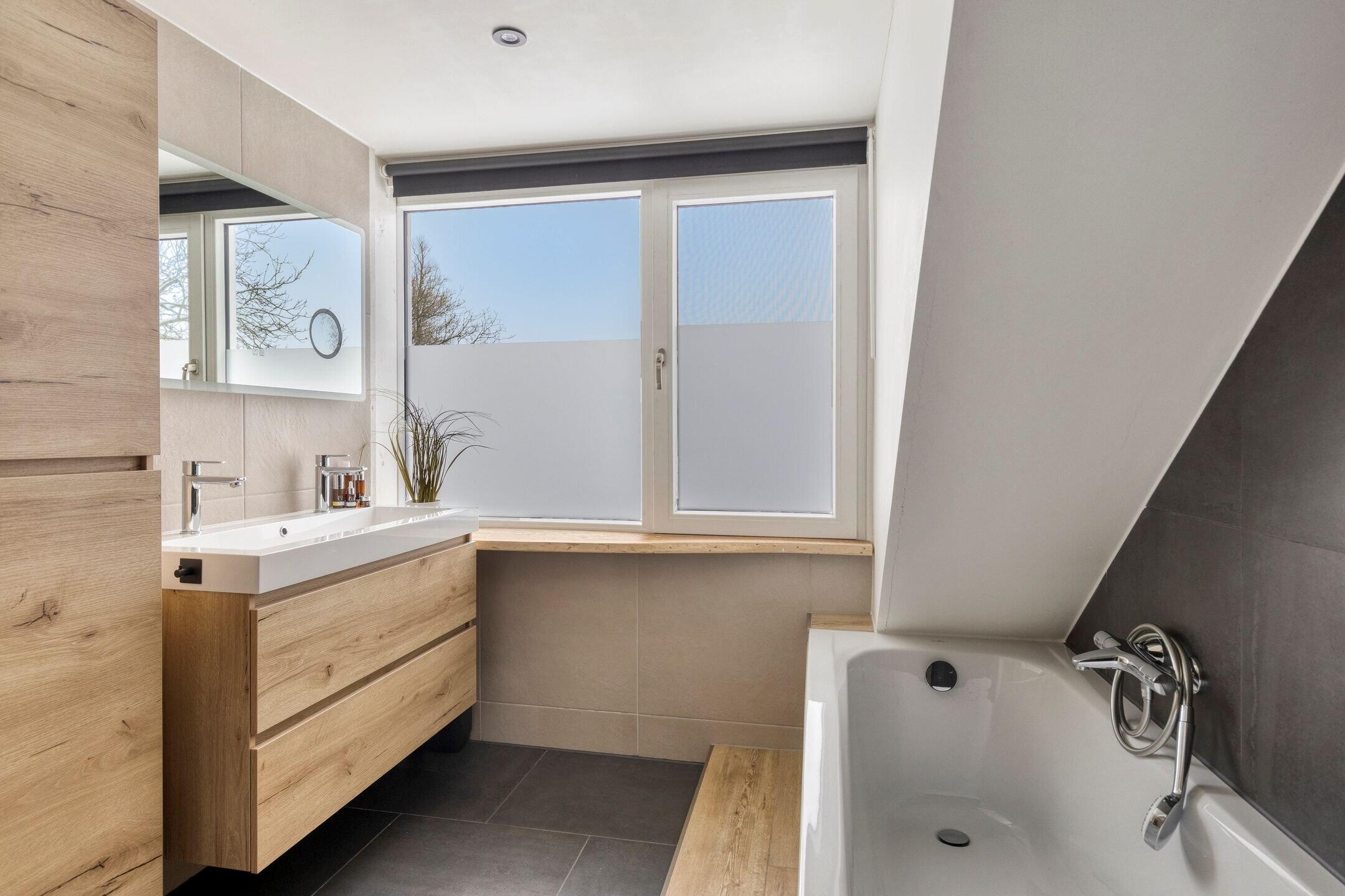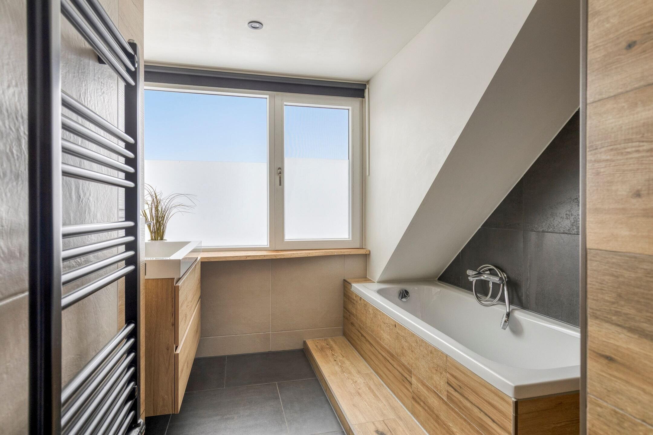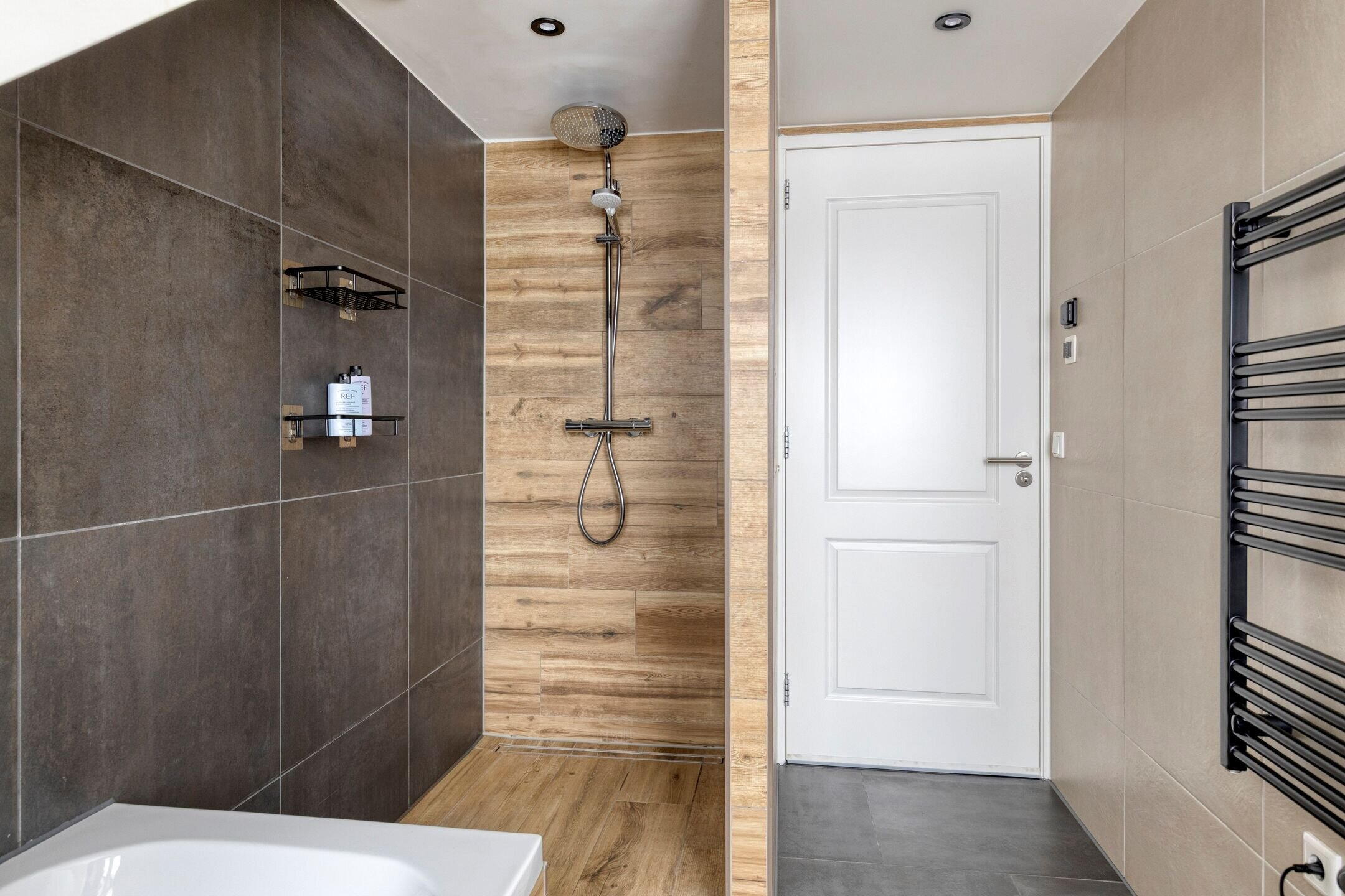 De lichte badkamer (met ook een dakkapel) is compleet ingericht met een douche, ligbad, toilet en een wastafelmeubel met spiegelverwarming en verlichting. De badkamervloer is v.v. elektrische vloerverwarming.